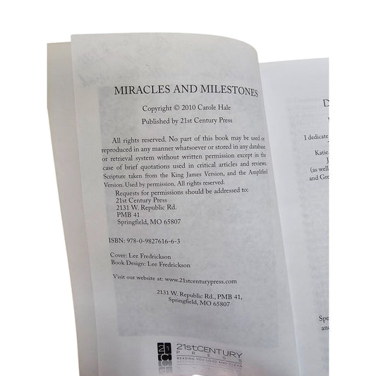 Miracles & Milestones Book By Carole Hale Missionary Story For Gods Glory Paperback