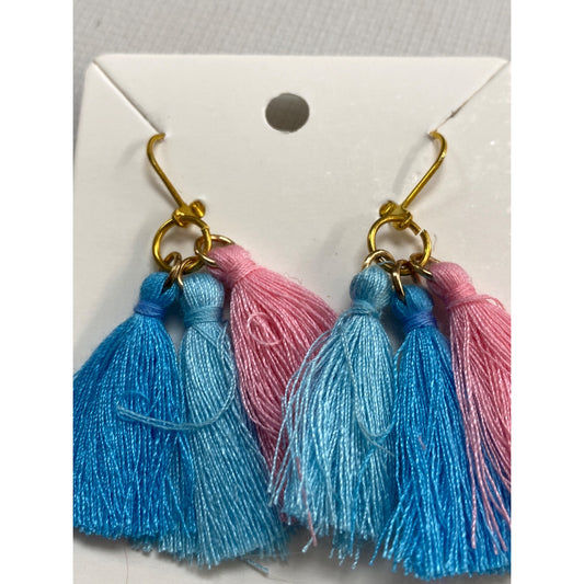 New Handmade Fan Tassel Earrings Gold Boho Jewelry Pink Blue Thread