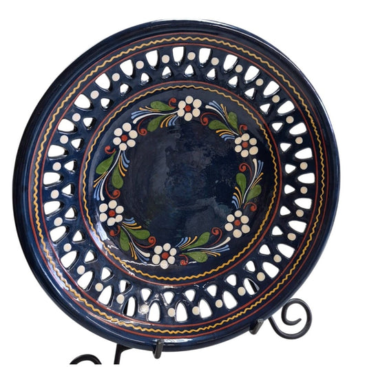 Navy Cut Out Floral Plate 12" Wall Hanger Display Shallow Bowl Dish