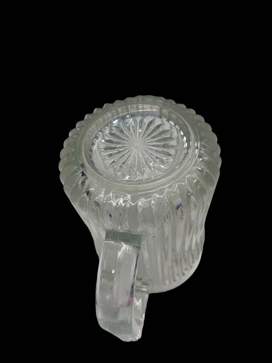 Ribbed Clear Heavy Glass Coffee Tea Mug Cup Starburst Bottom