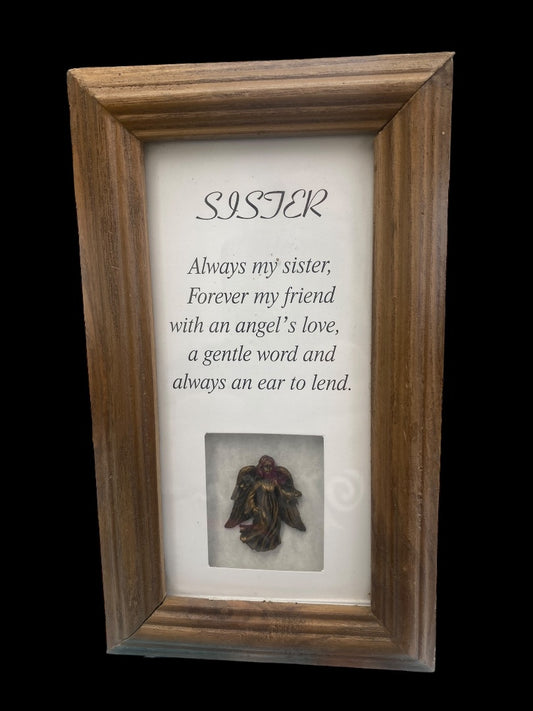 Sister and Angel Wooden Frame With Hand-Carved Angel
