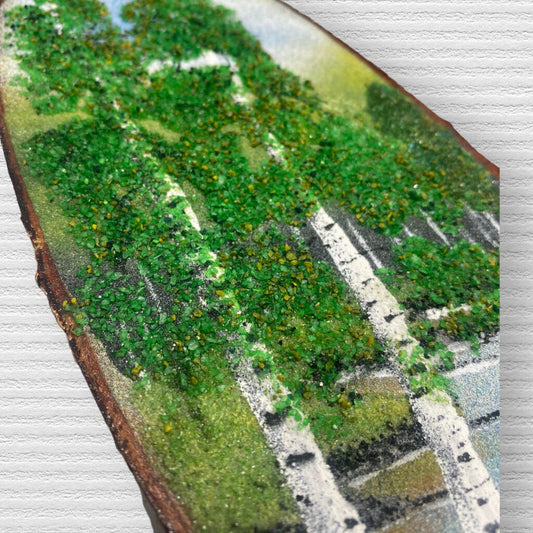 Textured Landscape Painting on Wood 12" Long 4" wide