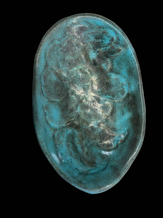 Turquois Clay Art Pottery Dish Handmade Painted Trinket Box Teal Aqua