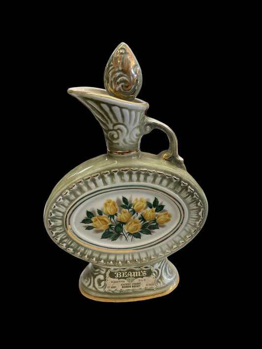 Vintage 1969 Jim Beam Rose Sage Green Gold Trim Decanter EMPTY
