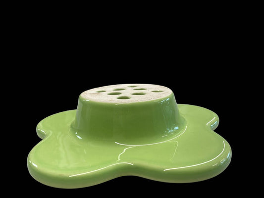 Vintage Ceramic Flower Frog Green Mason Jar Vase Top Topper Scalloped V