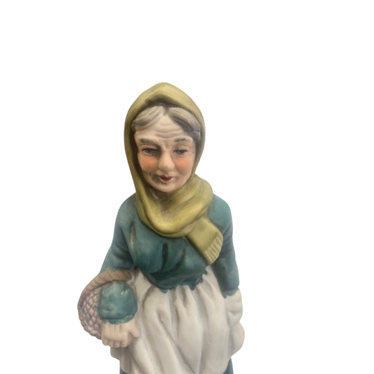 Vintage Ceramic Porcelain KREISS Lady Figure Folk Blue Bonnet FlowerBasket