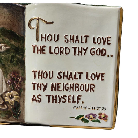 Vintage Ceramic Bible Jesus Plaque Mathew Gold Trim