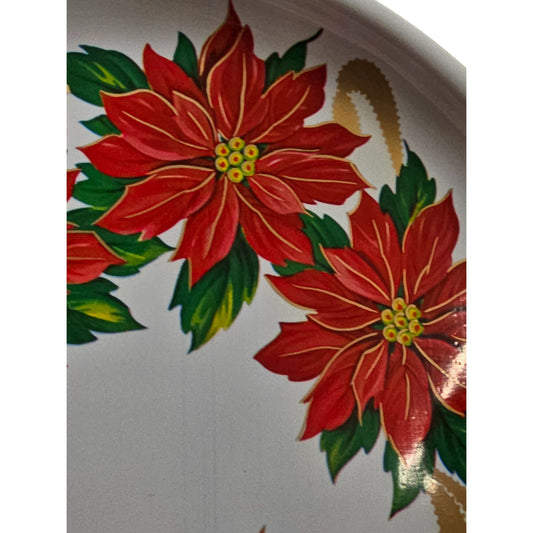 Vintage Christmas Poinsettia Serving Platter Holiday Decor 12"