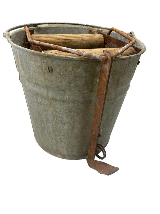 Vintage Galvanized Steel Mop Bucket w/ Foot Pedal Wringer Rollers WORKS