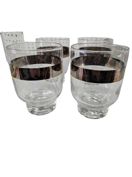 Vintage Silver Rim Brandy Old Fashioned Water Glasses Four Season Glasses Set 4