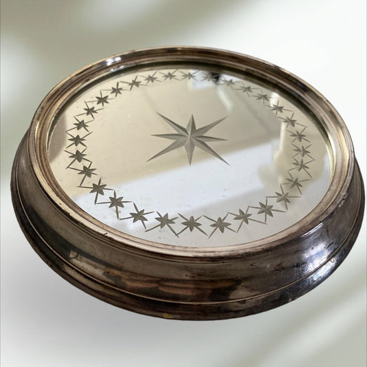 Vintage Silver Rimmed Etched Mirror Plate Coaster