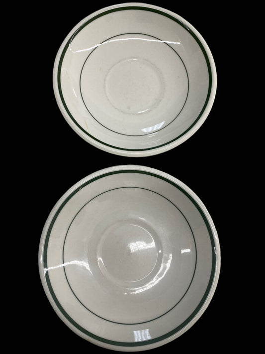 Vintage Shenango China Green Restaurant Stripes Saucer Plate Set of 2