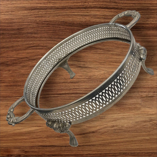Vintage Silver Pie Plate Cradle Casserole Dish Stand Footed Plant Stand