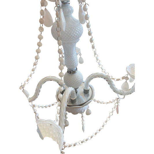 Vintage White Glass Beaded Chandelier Elegant 4-Light Fixture For Home Decor