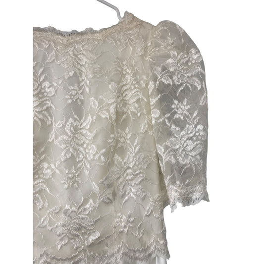 Vintage Wedding Dress Dessy Creations New York Off White Lace Dress Puff Sleeves Back Bow Size 12