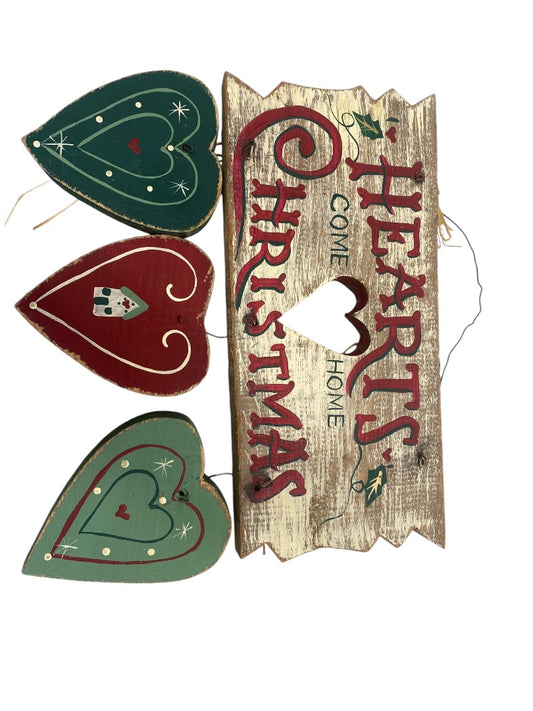 Vintage Wooden Christmas Wall Hanging Decor "Hearts Come Home Christmas"