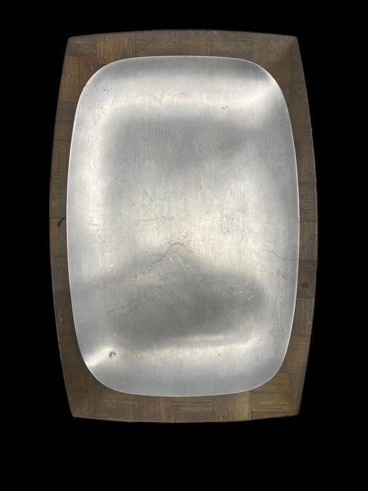 Vintage Weavewood Walnut Serving Tray/ Aluminum Sizzler Platter 17"x12"