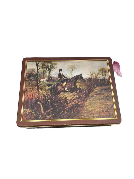 Warner Lauren Vintage Victorian Equestrian Hunting Hinged Tin Metal Box England