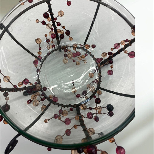 Wrought Iron Beaded Basket Glass Bowl Holder