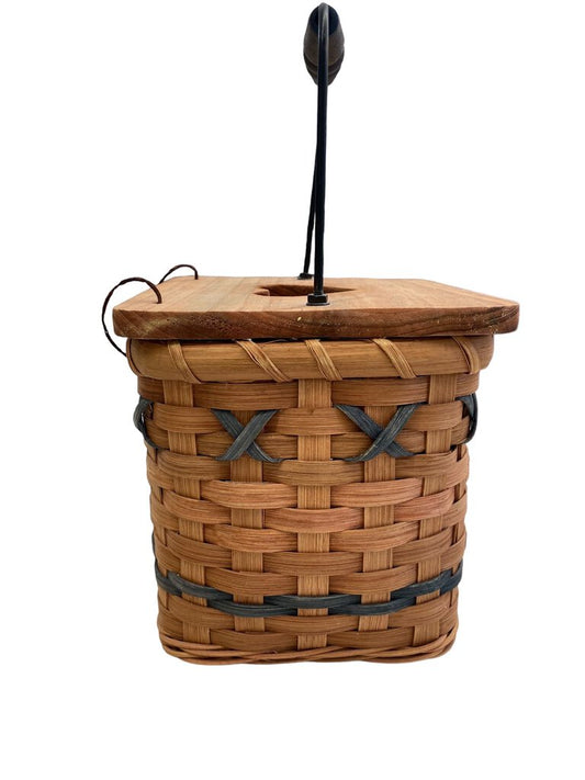 Woven Square Basket Detachable Wooden Lid with Heart Cut Out