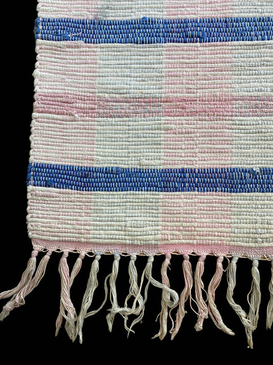 Woven Throw Rug Pink Blue White 43"x26"