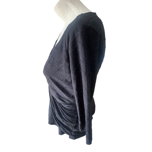 Wrapper Black Textured Long Sleeve Knit Top With Twist Front Design XLarge