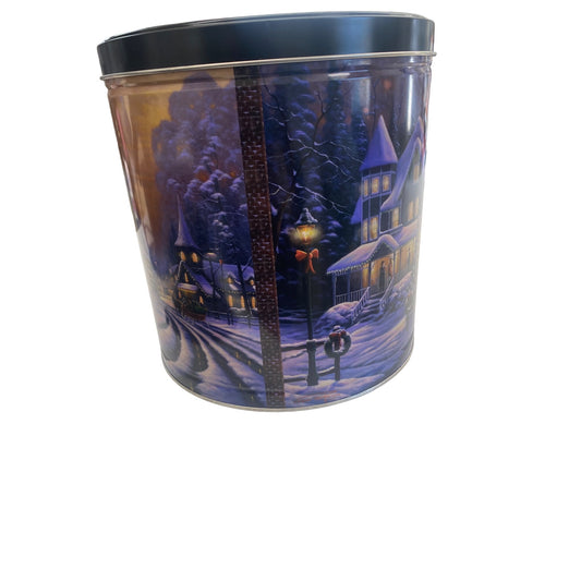Clancys Holiday Popcorn Mix Tin With Winter Village Scene 21oz Decorative Storage Empty