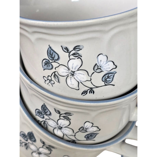 Corning Corelle Beige Coffee Cup Blue Leaf Flower Pattern Retired Set of 4