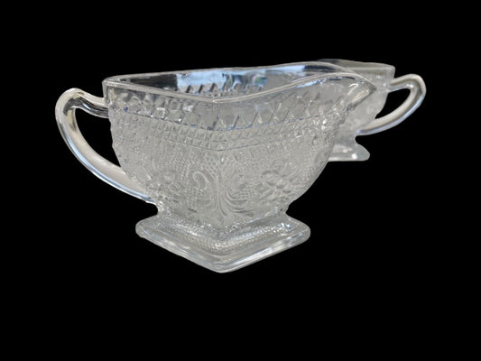 Crystal Clear Indiana Glass Cream & Sugar, 7"x5"x3.25"