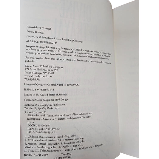 Divine Betrayal: An Inspirational Story Of Love Rebellion & Redemption By Graceann K. Deters