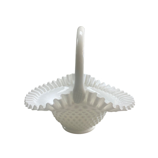 Fenton Hobnail Milk Glass Basket With Ruffled Edge