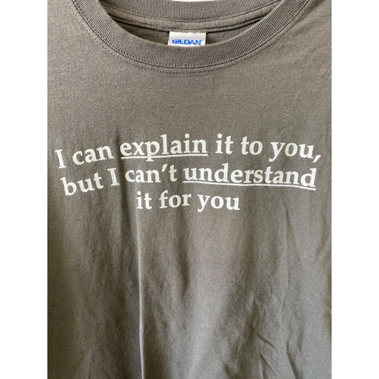 Funny Gildan Ultra Cotton Graphic T-Shirt L Gray "I Can Explain It To You But Cant Understand" size large