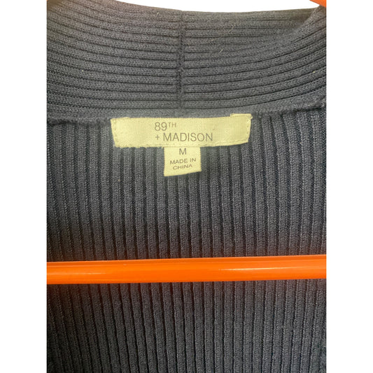 89th & Madison Womens Medium Ribbed Open Front Cardigan Sweater Navy