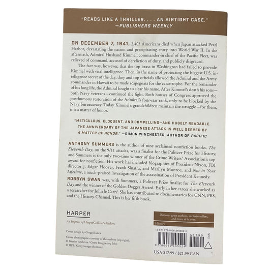 A Matter Of Honor Pearl Harbor: Betrayal Blame And A Familys Quest For Justice By Anthony Summers & Robbyn Swan Paperback