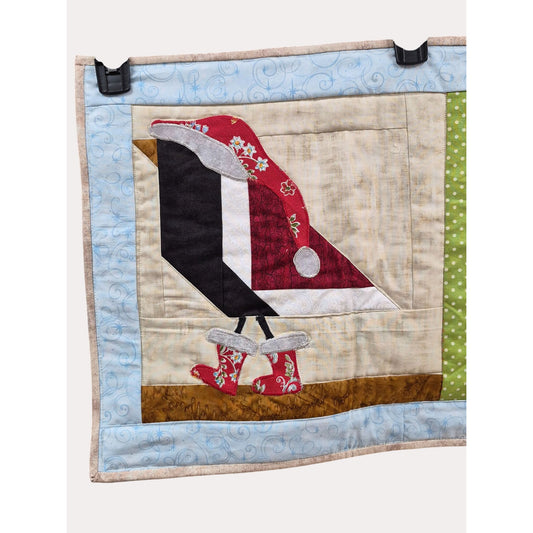 NEW Handmade Quilted Winter Table Runner With Snowman & Black Birds In Santa Hats