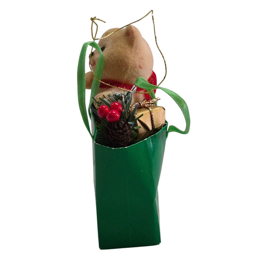 Vintage Christmas Joy Collectible Fuzzy Bear Ornament Gift Bag Decoration