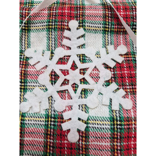 Christmas Plaid Wine Bottle Bag w Hat Snowflake Red Green