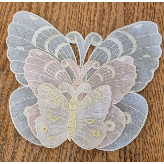 Delicate Butterfly Embroidered Appliques Pastel Fabric Craft Embellishments