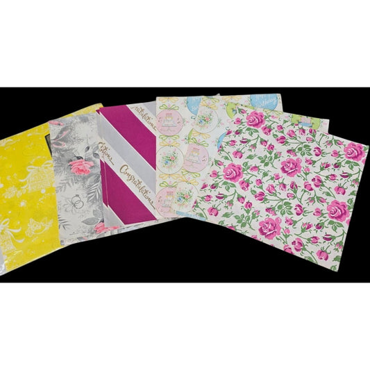 Vintage Gift Wrap Assortment Lot 5 Sheets Wedding Birthday Congratulations