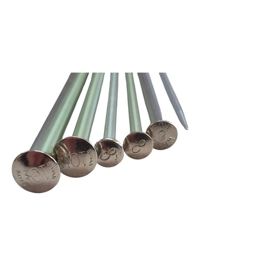 Vintage Susan Bates & Boye Aluminum Knitting Needles Set Sizes 8-10.5 Durable Craft Tools Silver & Green Finish