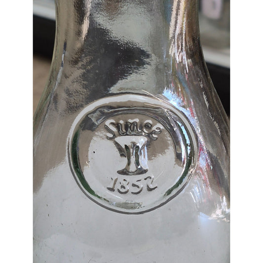 Vintage Glass Milk Bottle Carafe With Embossed "Since 1857" Logo
