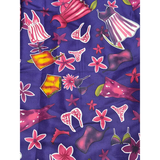 Vintage-Inspired Purple Satin Sewing Material With Floral & Dress Pattern 56" Width X 91" Length