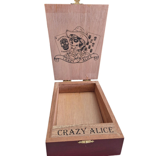Deadwood Tobacco Crazy Alice Wooden Cigar Box With Gold Latch Closure Decorative Storage
