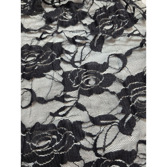 Black Stretchy Rose Lace Fabric Spandex 57" Long Elegant Floral Pattern Sewing & Crafts