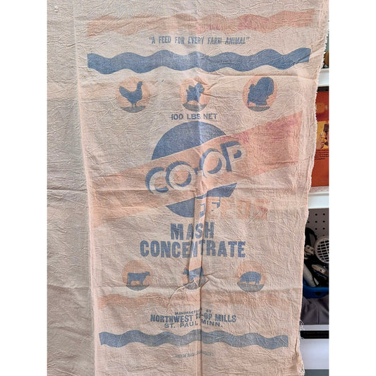 Vintage Pink Feed Sack Fabric Lot Mash Concentrate 100 Lbs. Northwest Co Op Mills St Paul, Minnesota