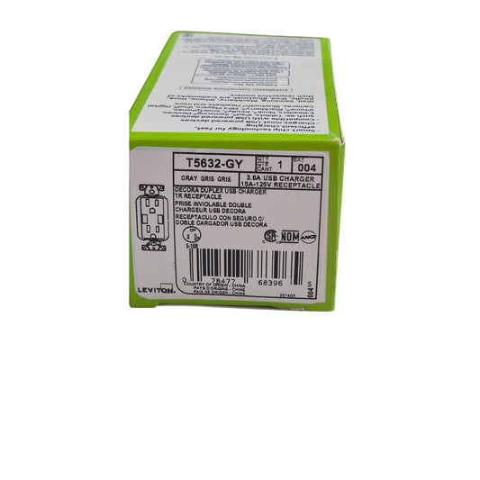Leviton Residential Duplex USB Charger T5632-GY Gray 15A/125V