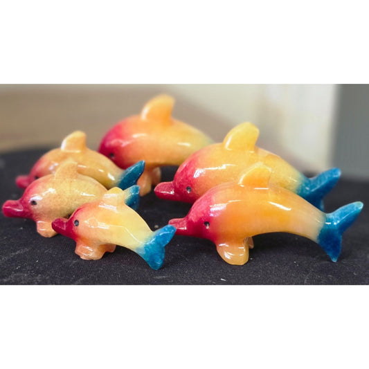 Polished Stone Dolphin Lot Hand-Carved Multicolor Figurine Orange Red Blue