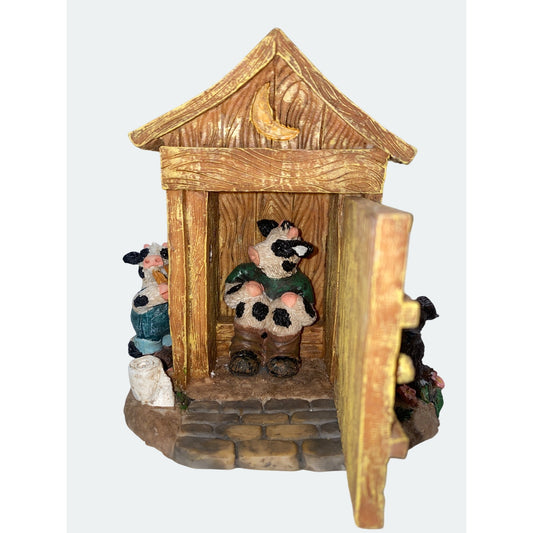 Cow-Themed Outhouse Figurine By Youngs China Rustic Farm Decor Collectible Resin Art