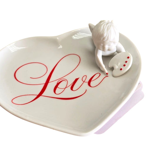 Avon 1984 Cupids Message Heart-Shaped Porcelain Dish Original Box
