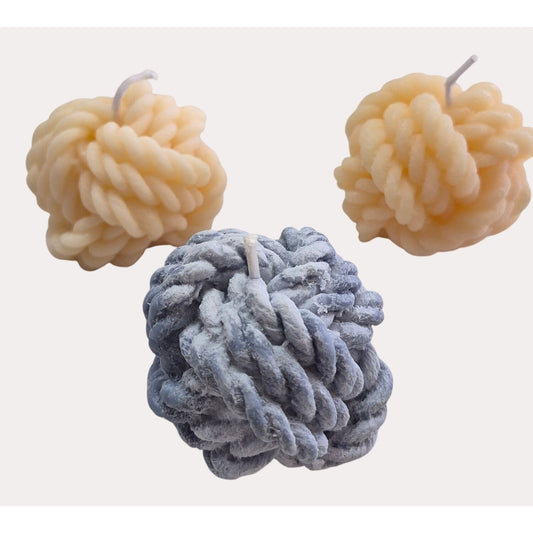 Knotted Rope Soy Candles Set Of 3 - Beige & Blue - Handmade Decorative Candles For Home Decor Or Gift